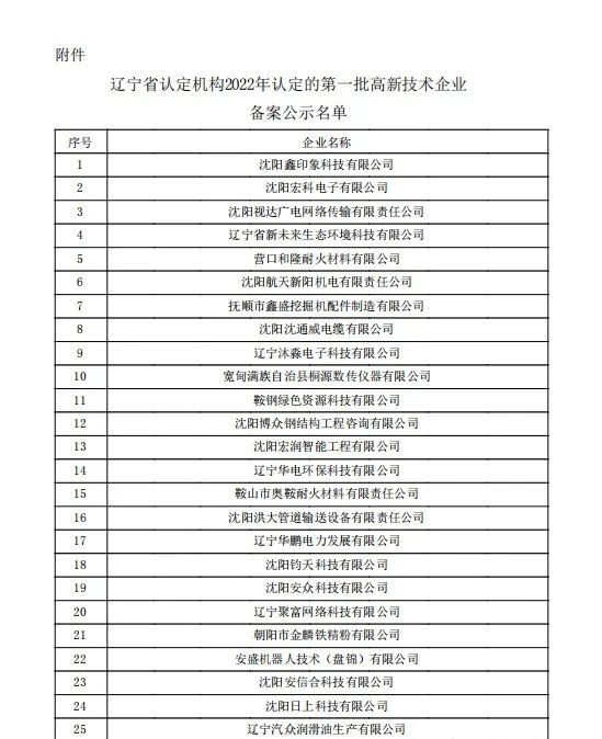 根据《高新技术企业认定管理办法》(国科发火〔2016〕32号)和《爱体育(中国)官方网站-登录入口》(国科发火〔2016〕195号)有关规定,现将辽宁省认定机构2022年认定的第一批535家高新技术企业(企业名单详见附件)进行备案公示,公示期为10个工作日。