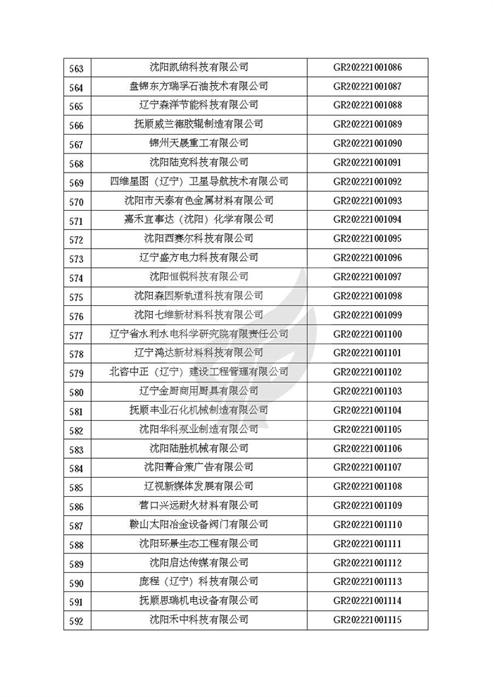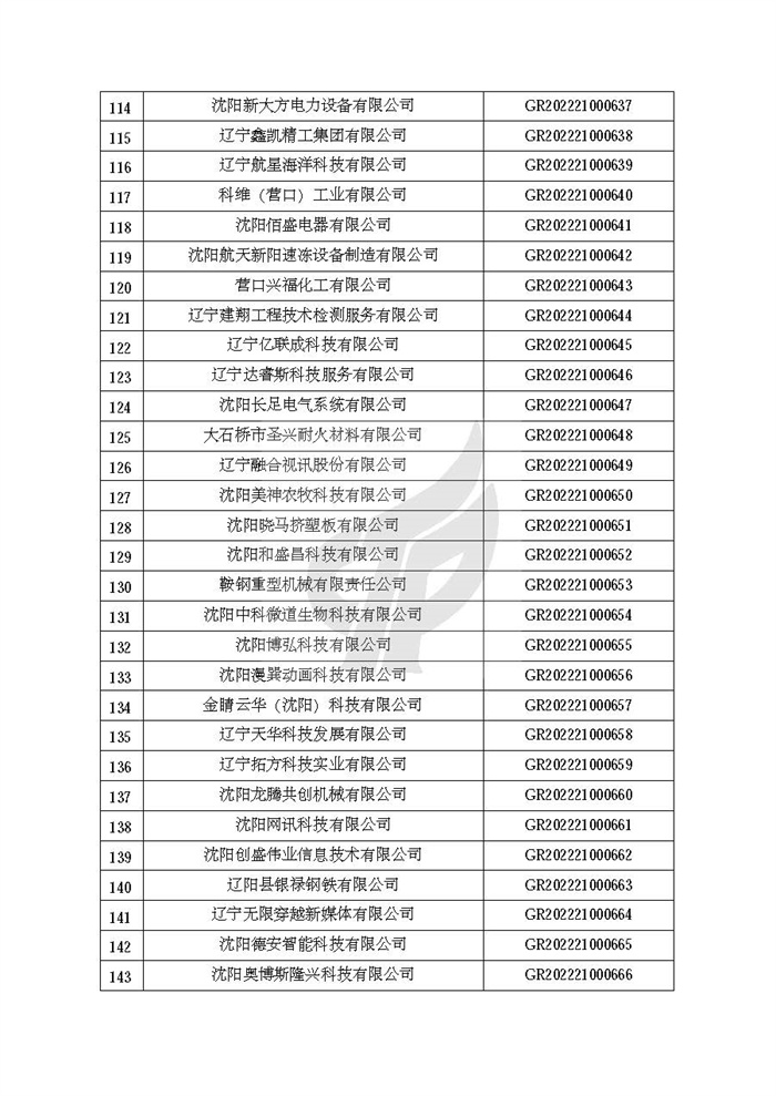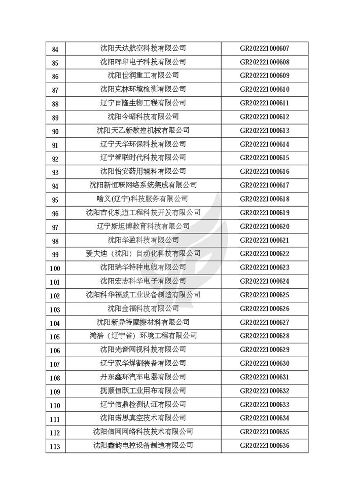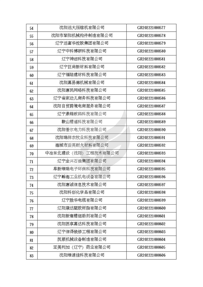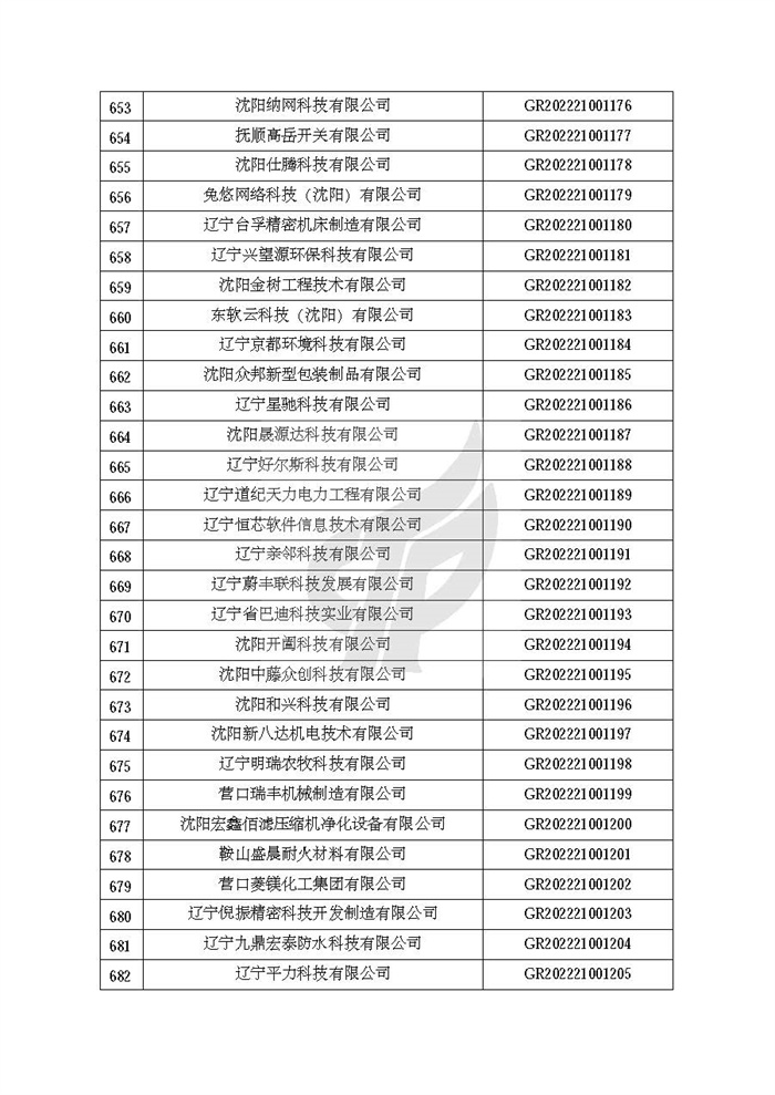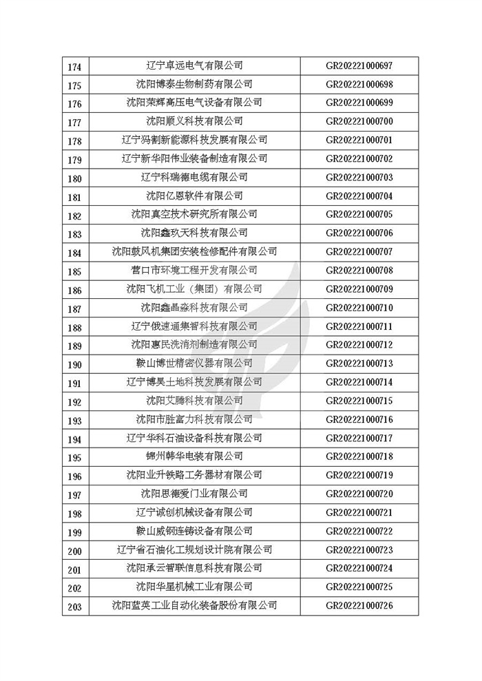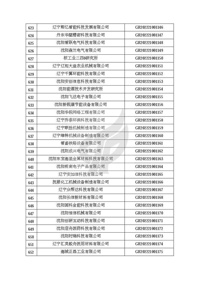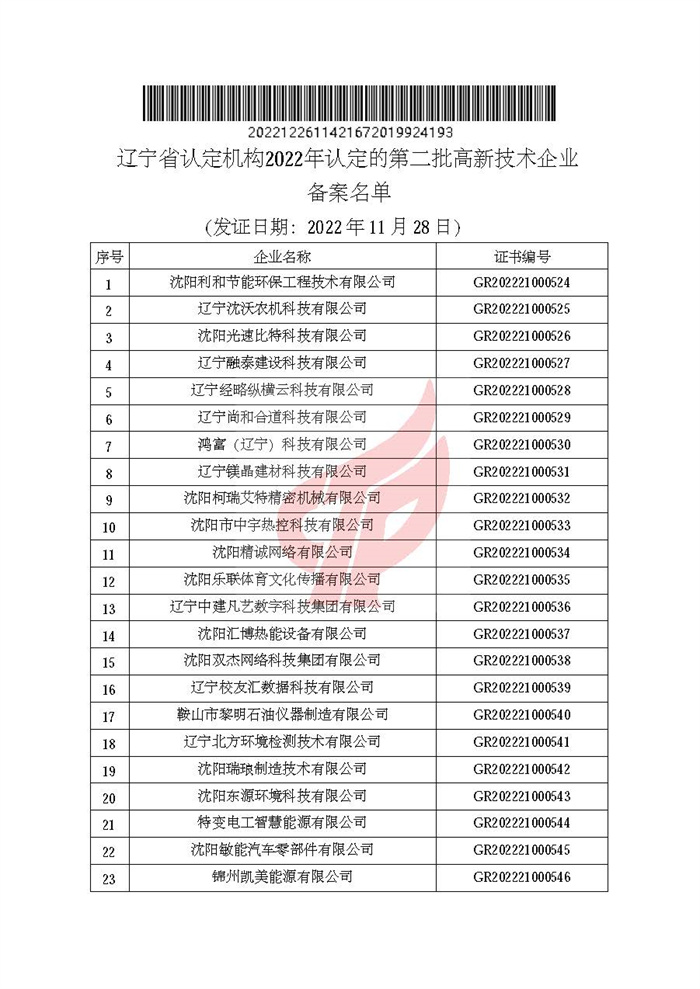附件:辽宁省认定机构2022年认定的第二批高新技术企业备案名单