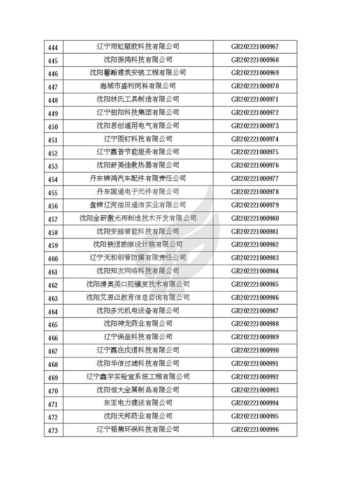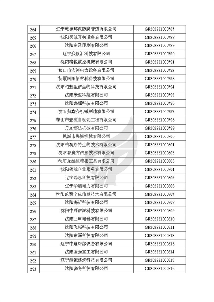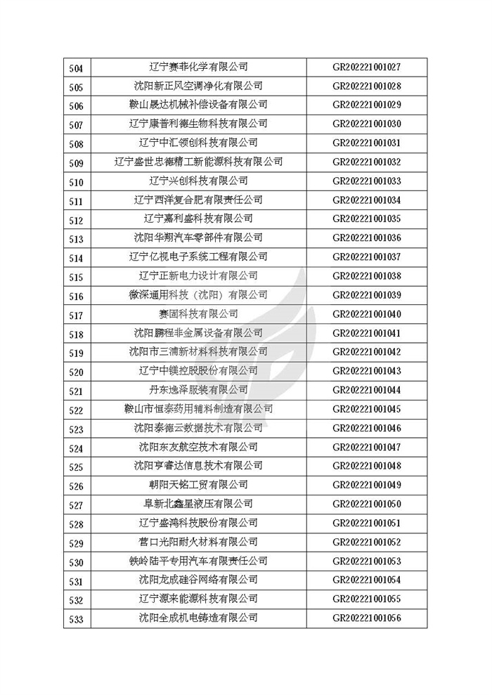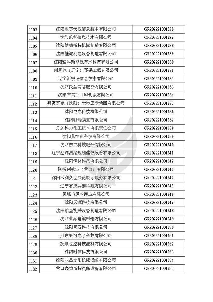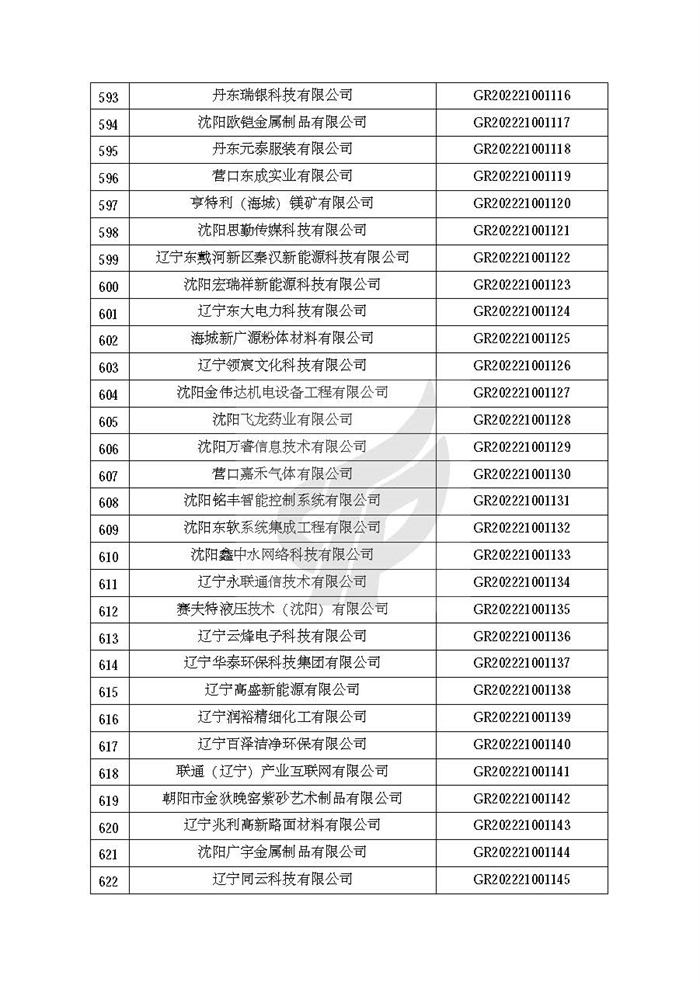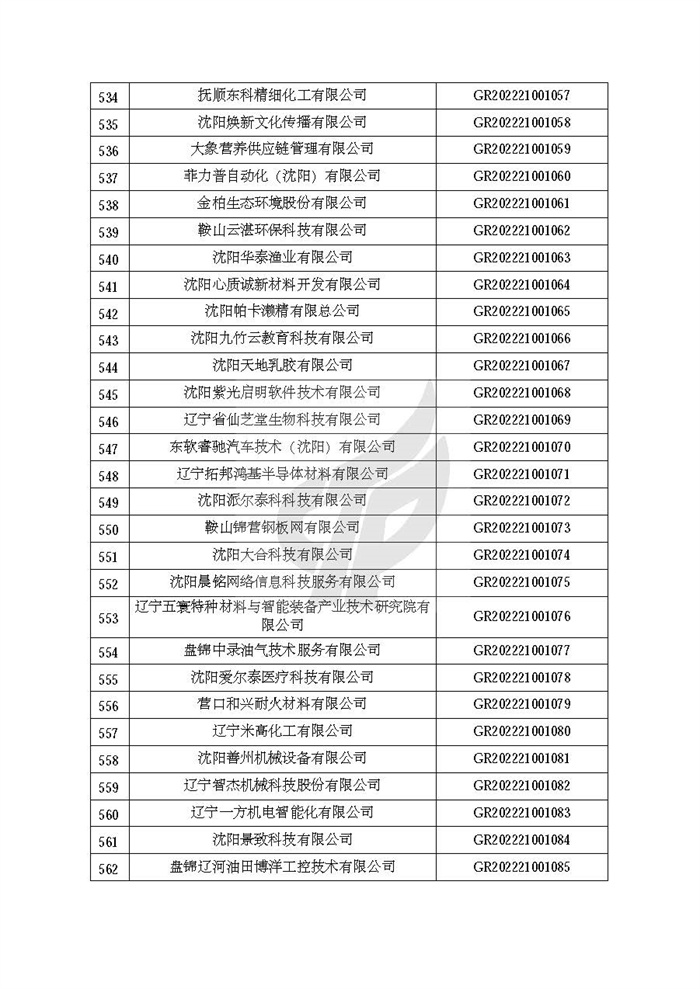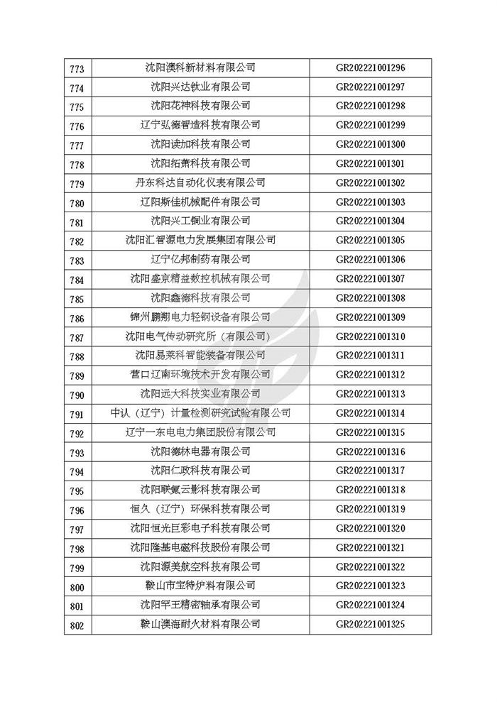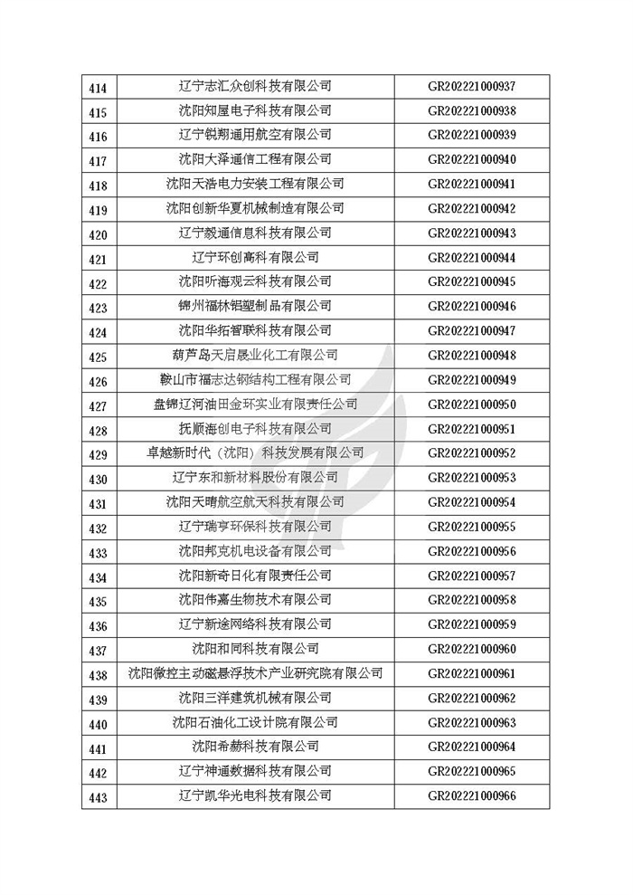 附件:辽宁省认定机构2022年认定的第二批高新技术企业备案名单