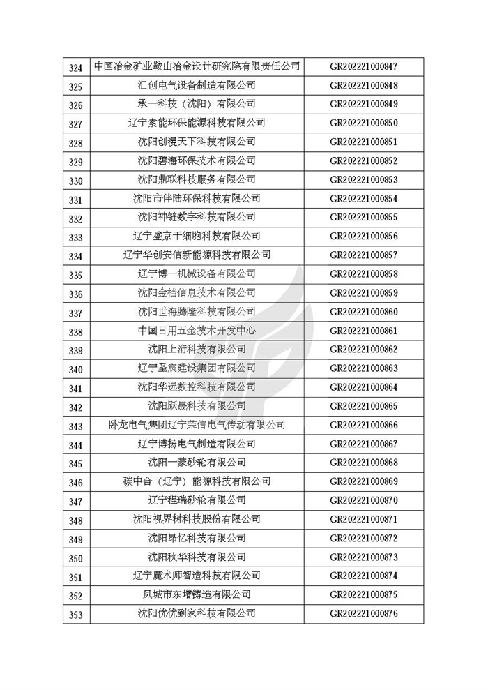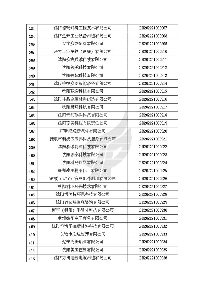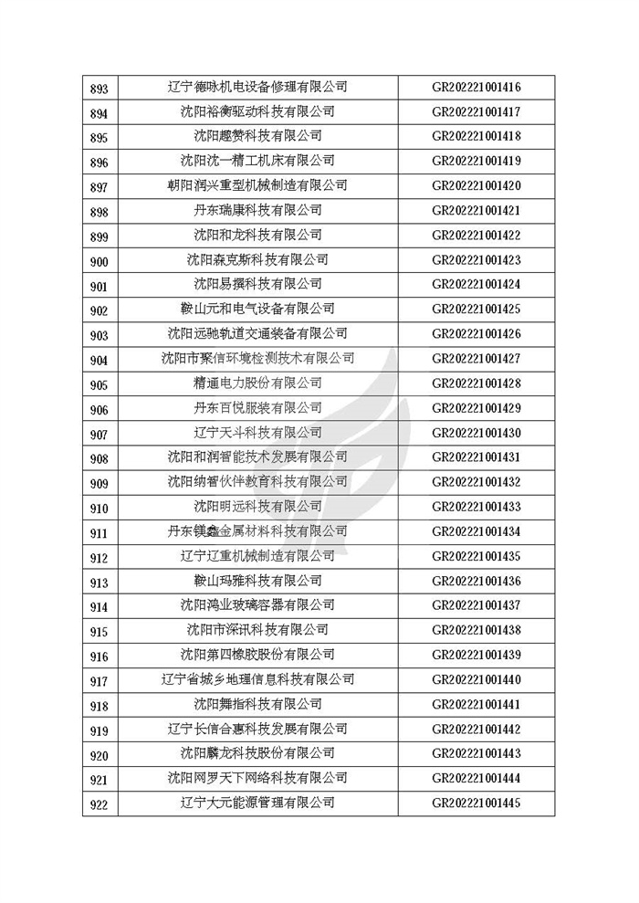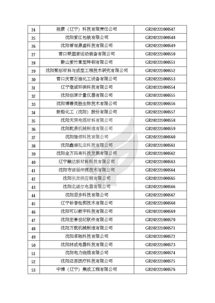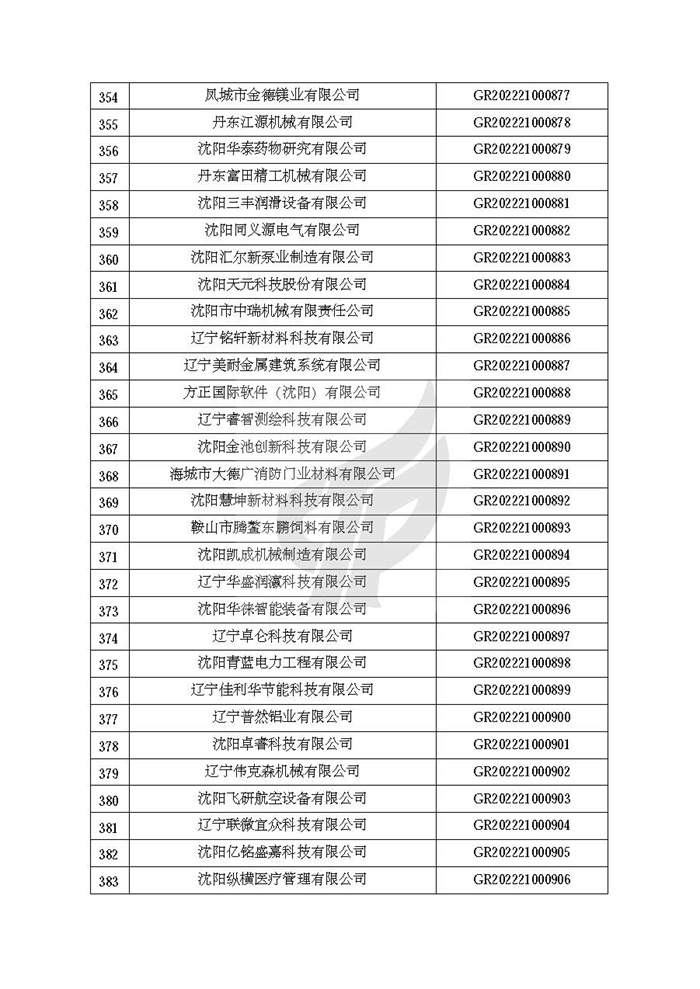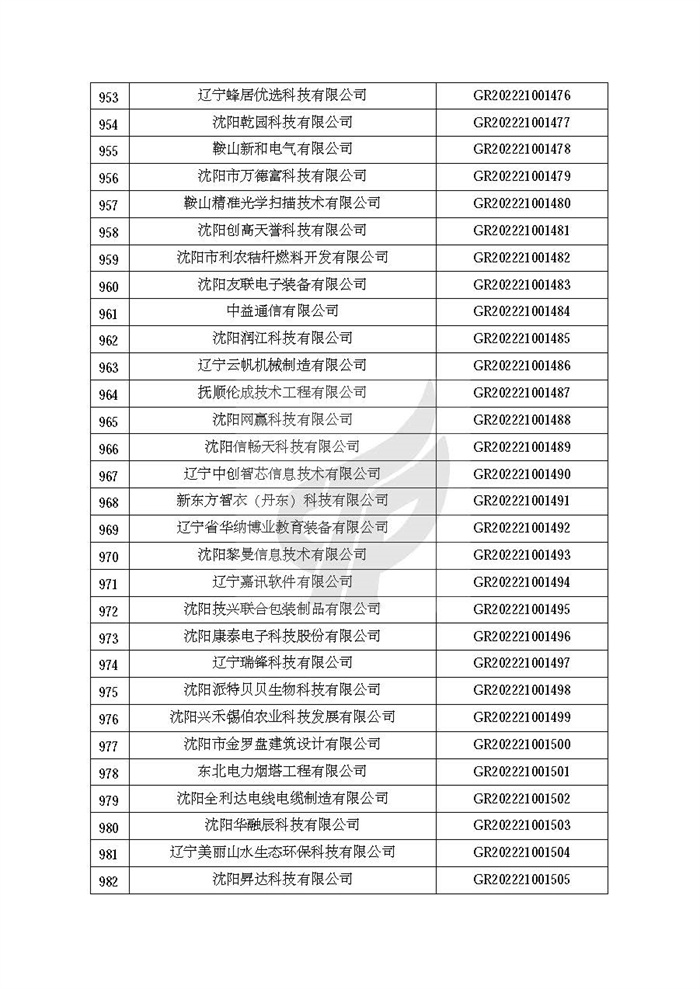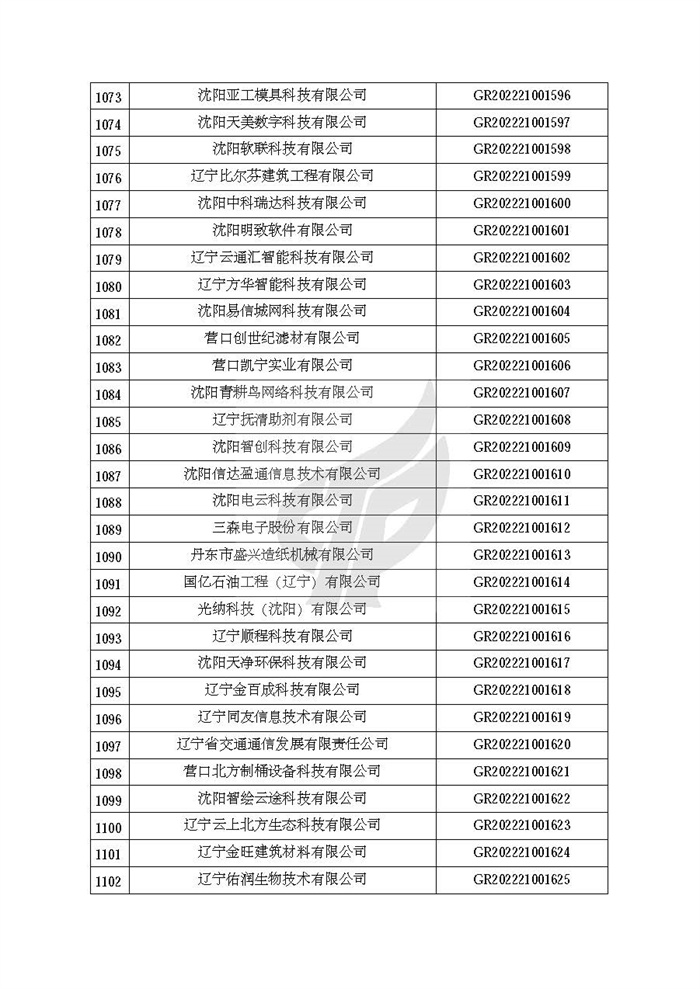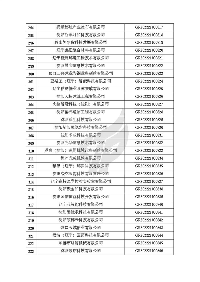 附件:辽宁省认定机构2022年认定的第二批高新技术企业备案名单